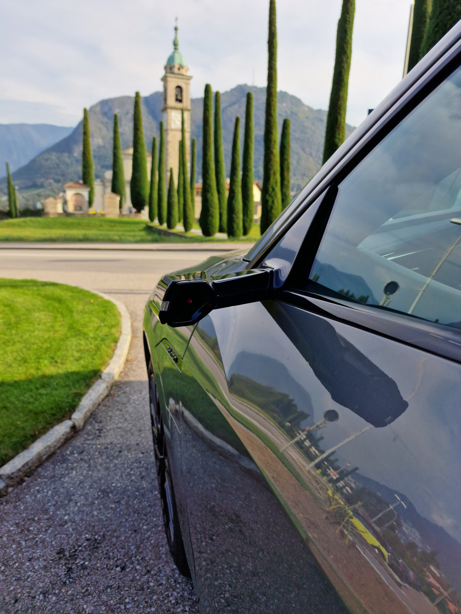 Come va? Ritiro l'auto dal concessionario a Breganzona. Noto che c'è qualcosa di strano e mancano, o meglio, non ci sono i classici specchietti retrovisori. Infatti la Q8 ha le telecamere montate al posto degli specchietti. Esteticamente sono molto belli ma nella praticità di tutti i giorni purtroppo risultano un po' scomodi perché il display si trova sulla portiera in basso rispetto agli specchietti. Forse una posizione più alta sarebbe stata l'ideale. Ma alla fine sono un optional e si può decidere se acquistarli o meno. Internamente, è molto curata, come Audi sa fare: finiture e sedili in pelle nera (S line) con cuciture rosse, inserti in alluminio e carbonio e una plancia piena di schermi che permettono di gestire in modo semplice e rapido la climatizzazione e l'infotainment. Comoda sia davanti che dietro con tanto spazio per le gambe, insonorizzata molto bene e non si sentono particolari rumori esterni.