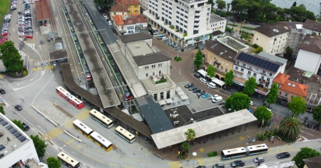 Su questo importante asse stradale transitano e si fermano alla stazione FFS anche i numerosi autobus di linea che collegano “orizzontalmente” il locarnese. Gli altri autobus, che servono in modo capillare tutto il nostro territorio, convergono alla stazione necessitando di un luogo di stazionamento moderno e sicuro che non comprometta la viabilità di transito sull’asse principale.