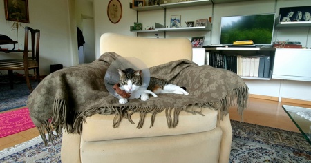 La gatta ha il microchip e da lunedì è costretta a portare un collare a cono e ha il sedere...
