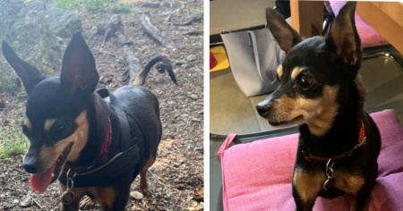 L' animale è di razza Pincher, taglia piccola, colore nero/marrone. È sterilizzata/chippata. È spaventata e schiva con gli estranei. Le indicazioni sono di non rincorrerla e non cercare di prenderla. Se avvistata o trovata, contattare immediatamente i numeri di telefono +41 79 374 85 58 e +41766831987.