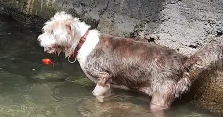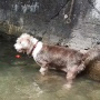 VAL MARA - Smarrita a Melano Tina, incrocio pastore bergamasco, nera e bianca, collare rosso, con microchip.