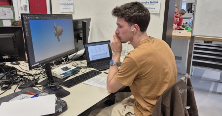 Imparare tanto in poco tempo e affrontare argomenti sempre diversi: è questa la sfida quotidiana di Leandro Bettini, apprendista progettista meccanico alle Officine di Bellinzona.