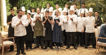 Gli ospiti hanno potuto così gustare una cena all’insegna dell’eccellenza anche nei vini della Cantina Tamborini: Sashimi di hamachi con caviale Kaviari Kristal, cavolo rapa, fagioli arrostiti e crescione, abbinato al SanZeno Quaranta Metodo classico Pas dosé 2019; il SanZeno Mosaico 2022, Bianco del Ticino Doc ha accompagnato Granchio reale con zeste di Yuzu, brodo di ramen ridotto e olio di porro di Kyoto gustato e il Salmone scozzese con blini di patate, sedano rapa, beurre blanc, dragoncello e semi di senape; le Animelle di vitello glassate con lenticchie, funghi champignon, salsa allo Sherry sono state abbinate al Cuvée Settantacinque 2015 in Magnum; la Costoletta di manzo con peperonata, carciofo piccolo, prezzemolo e pepe del Madagascar è stata impreziosita dal Comano 2019 in Magnum; per finire More con budino di riso caramellato, finocchio e dragoncello; Ananas d’Equateur con babà al rhum, vaniglia di Tahiti e fava tonka.