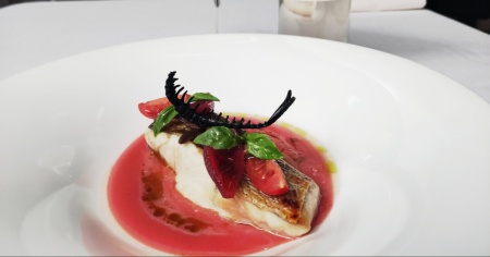 Lucioperca, Passatina di datterino, Olive taggiasche di Marco Badalucci, Ristorante Badalucci, Lugano