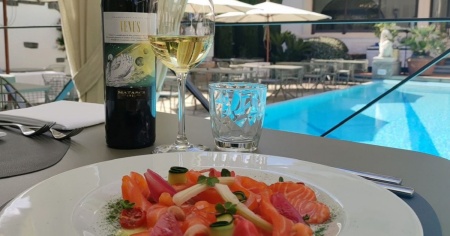 Sospesi fra le rive del Lago Maggiore e i ripidi pendii della montagna, nella piccola località di Brissago, lungo gli stretti vicoli che scendono verso il lago, si ammirano angoli pittoreschi, giardini dove limoni, aranci, cedri crescono all'aria aperta. Qui il Caesar’s Restaurant, all’interno del Sunstar Hotel Brissago, offre un’atmosfera dai sapori mediterranei. Lo chef Fabio Bottini mira a valorizzare l’autenticità dei prodotti locali rispettandone la stagionalità e l’artigianalità, attraverso la rielaborazione delle materie prime nella sua massima semplicità. Chi prova la sua cucina incontra ogni volta sapori nuovi in un ambiente elegante e curato nei dettagli. Come nella Trota marinata, verdure in carpione e salsa agli agrumi, una piacevole combinazione di sapori esaltati dall’abbinamento con Venus Chardonnay Ticino DOC 2023, Matasci, un vino ricco e corposo a produzione limitata creato solo nelle migliori annate. Le sue intriganti note di frutta gialla matura intervallate da sentori speziati sono perfette per accompagnare questo piatto.