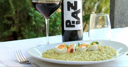 Ecco un Risotto alle ortiche con Büscion della Valle di Muggio e mandorle tostate abbinato a Piaz 2023 dell’Azienda Agricola Bianchi, vino bianco biologico, armonico, morbido e dalla buona struttura, fermentato e affinato in barrique, piacevole da bere in compagnia.