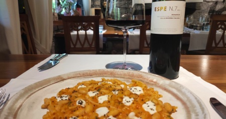 Per Tio.ch e Ticino Gourmet lo chef propone una Pasta e fagioli con spuma di formaggio caprino abbinato a Espe N7. di Tamborini, un vino fragrante e minerale, di buona struttura, una vera e propria chicca creato dal vitigno Arinarnoa in purezza.