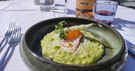 Risotto all’aglio orsino, buscion di capra e trota salmonata