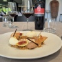 Per il gel di fichi, tagliare i fichi grossolanamente, mettere in un pentolino con lo zucchero, cuocere per 10 minuti, frullare, aggiungere la pectina e riporre sul fuoco per 2 minuti. Lasciare raffreddare.