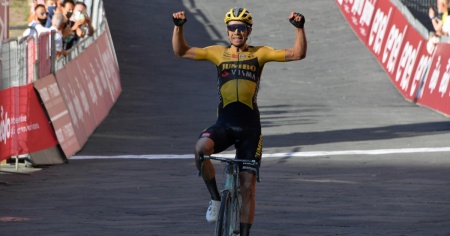 Il 25enne della Jumbo-Visma, perfettamente a suo agio sul tracciato odierno con partenza e arrivo a Siena, è giunto in solitaria al traguardo di Piazza del Campo. Alle sue spalle, staccati di 30", l'italiano Formolo (Uae Team Emirates) e il tedesco Maximilian Schachmann (Bora-Hansgrohe). Quarto l'altro azzurro Alberto Bettiol.