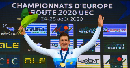 L'elvetico ha vinto con autorità la cronometro dei Campionati Europei. In campo femminile bronzo per Marlen Reusser