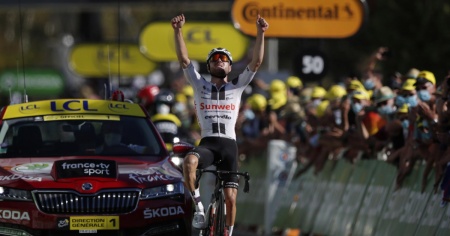 SARRAN - Marc Hirschi si è imposto nella dodicesima tappa del Tour de France, la Chauvigny-Sarran Corrèze di 218 km. La frazione più lunga della Grande Boucle 2020 ha definitivamente incoronato la grinta e la determinazione del rossocrociato, sicuramente uno dei grandi protagonisti di questo giro.