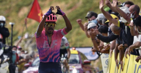 Non è mancato lo spettacolo nella tredicesima tappa del Tour de France, condita da ben 7 GP della montagna e vinta dal colombiano Daniel Martinez al termine della terribile e faticosissima salita del Pas de Peyrol. Il colombiano della Education First - dopo un emozionante testa a testa - ha avuto la meglio sul tedesco Lennard Kämna (+4"). Terzo Maximilian Schachmann, che ha tentato il colpaccio ma è stato ripreso e distanziato nel finale (+51").