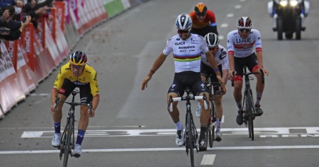 Proprio questi tre campioni, insieme con Julian Alaphilippe e Matej Mohoric, hanno segnato gli ultimi chilometri della classica monumento, staccando tutti i rivali e guadagnando il diritto di contendersi il successo.
