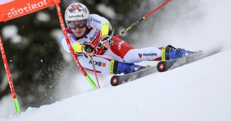 Il francese in testa dopo la prima manche del gigante in Val Badia, terzo l'elvetico a 40 centesimi.