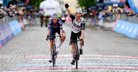 GORIZIA - La 15esima tappa del Giro d'Italia - fra Grado e Gorizia (147km) - ha sorriso a Victor Campenaerts. Il ciclista belga ha sconfitto anche le condizioni climatiche avverse, battendo in volata l'olandese Oscar Riesebeek.