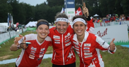 Già poco dopo il massenstart, la prima trattista rossocrociata Elena Roos partiva davanti, alternando nei primi punti la leadership con la svedese Risby e la finlandese Harju. A partire dal sesto punto di controllo la 30enne di Cugnasco è riuscita però a lanciarsi in volata e a staccare le altre atlete, incrementando a poco a poco, punto per punto, il suo vantaggio, perdendo però qualcosina sul finale a causa di una scelta di percorso non ottimale al 13esimo punto. Ciononostante l’atleta ticinese ha concluso la sua tratta in solitaria e saldamente in testa, dando il cambio in prima posizione in 36’26’’ con 36’’ di vantaggio sulla grande rivale Svezia e oltre 50’’ su Russia, Estonia e Danimarca. La seconda trattista Sabine Hauswirth ha però perso già nei primi 3 punti il suo vantaggio, facendosi recuperare e superare dalla svedese Hagstrom terminando quindi la sua tratta con ben 3’39’’ di ritardo, e appena 11’’ di vantaggio sulla ceca Kosova. Con il titolo mondiale ormai fuori portata e con la svedese Tove Alexandersson irraggiungibile, la terza trattista rossocrociata Simona Aebersold, approfittando di un grande errore della Kosova al punto 5, è riuscita con un’ottima gara a conquistare la medaglia d'argento per la Svizzera, concludendo a 2’33'' dalla Svezia. Terzo posto con oltre 7' di ritardo infine per la Norvegia, che ha beffato la Repubblica Ceca sul finale.