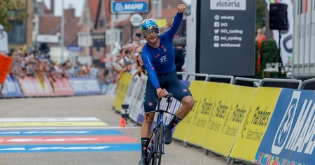 BRUGES - Filippo Ganna ha conquistato la prova a cronometro - da Knokke a Bruges (43,3km) - dei Mondiali, in corso di svolgimento nelle Fiandre.