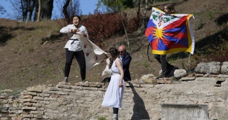 Il rituale di accensione del braciere è stato segnato dalla protesta di alcuni manifestanti pro-Tibet