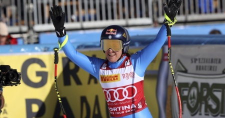 L'azzurra si è imposta sulle Tofane in una Discesa accorciata e condizionata dal forte vento.