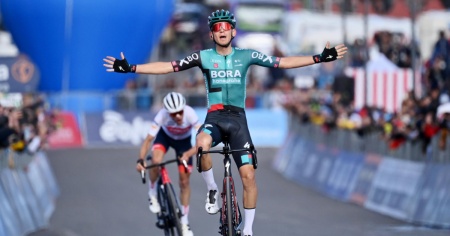 Il tedesco della Bora ha vinto sull’Etna, lo spagnolo della Trek ha preso la maglia rosa