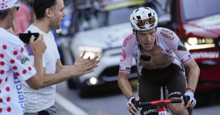 CHÂTEL - Bob Jungels si è imposto nella nona tappa del Tour de France, la Aigle-Châtel (Portes du Soleil) di 193 km, precedendo Castroviejo (22”), Verona (26”), Pinot (40”), Pogacar (49”), Vingegaard (49”), Thomas (52”), Yates (52”), Mas (52”) e Quintana (52”).