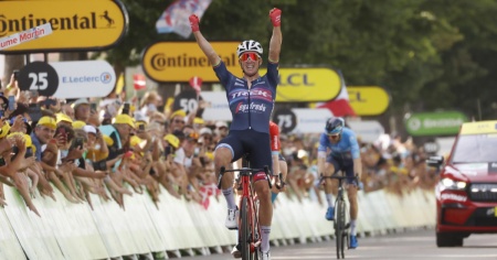 Il 26enne della Trek Segafredo si è imposto nella tredicesima frazione - Bourg d’Oisans-Saint Etienne di 192,6 km - bruciando in volata i compagni di fuga Fred Wright e Hugo Houle.