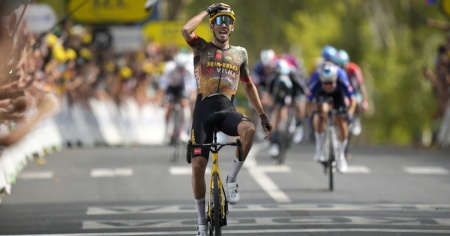 Il ciclista di casa - alla prima affermazione alla Grande Boucle della sua carriera - si è reso protagonista di uno scatto bruciante nell’ultimo km, che gIi ha permesso di staccare il belga Jasper Philipsen e l'italiano Alberto Dainese, rispettivamente secondo e terzo (+1'').