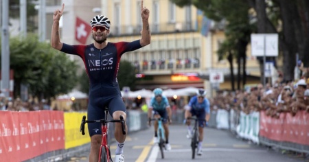 Il ciclista italiano - residente ad Ascona - ha preceduto al traguardo Simon Clarke e Vincenzo Nibali.