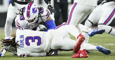 Hamlin, immediatamente soccorso da un team di medici e paramedici che gli hanno praticato il massaggio cardiaco, è poi stato ricoverato in ospedale dove le sue condizioni sono definite «critiche».