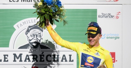 SALVAN - La seconda frazione del Tour de Romandie - da Friborgo a Salvan/Les Marécottes (171,2 km) - è stata vinta da Thibau Nys (4h02'44'').