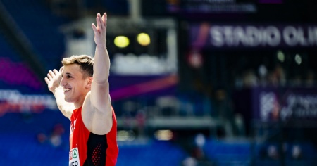 ROMA - Con un salto, il primo, subito buono - anzi ottimo - Simon Ehammer si è qualificato per la finale del salto in lungo agli Europei di atletica di Roma.