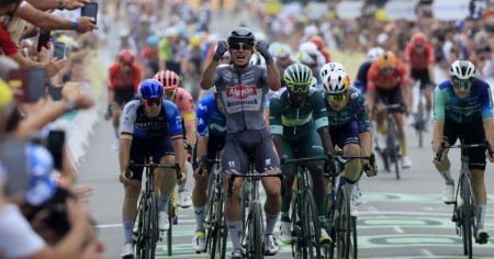 SAINT-AMAND-MONTROND - La decima tappa del Tour de France, quella consumata tra Orléans e Saint-Amand-Montrond (187,3 km) dopo il primo giorno di riposo, è stata vinta in volata da Jasper Philipsen.