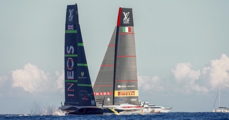 Iniziata con oltre due ore di ritardo per assenza di vento, la terza sfida tra Luna Rossa e Ineos Britannia - ferme sull’1-1 - non è stata completata in tempo utile (45'). Il rischio di cadere dai foil era molto elevato e si è concretizzato per entrambe nel quinto lato di regata.
