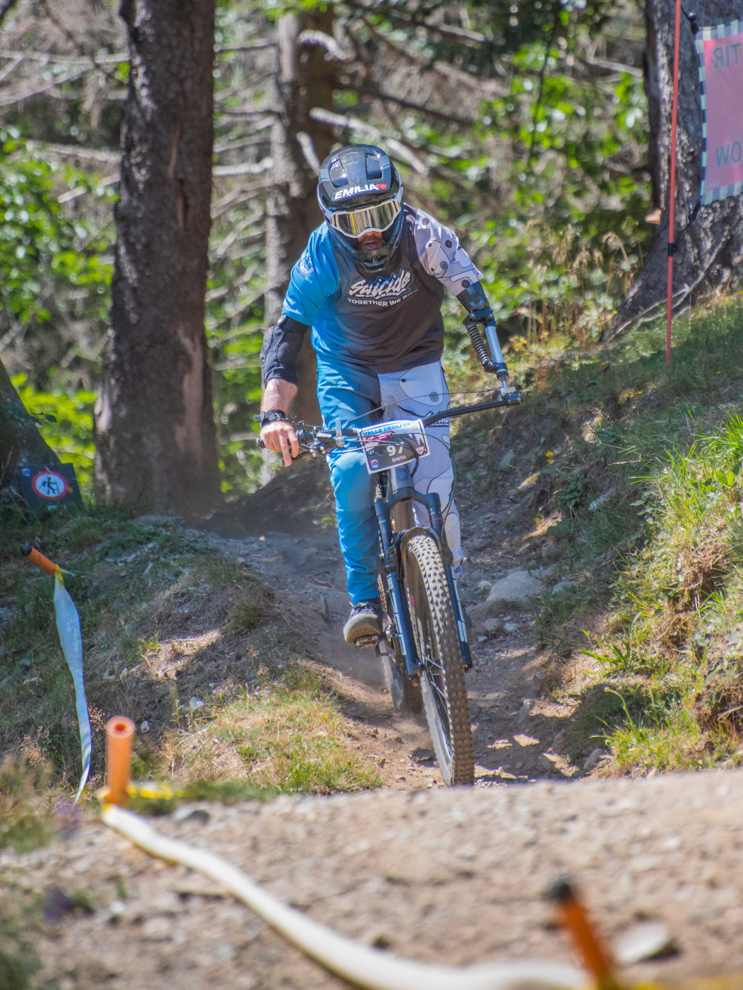 «In realtà non voglio essere un esempio di vita o altro, ma al massimo dare un segnale nel Downhill. Questo sì, perché lì so di poter trasmettere qualcosa. Volevo farlo diventare il mio sport e ce l’ho fatta, competendo con persone normodotate. Di questo mi devo dare credito. Ho dovuto lottare per farlo e non nego che ci siano state delle difficoltà. Protesi da adattare e “inventare”, modifiche, cadute anche rovinose: è stato un cammino lungo, ma sono arrivato. Non voglio essere banale, ma come messaggio vorrei dire a tutti di non mollare mai. All'inizio facevo fatica a stare in equilibrio sulla bici, ora faccio anche delle gare».
