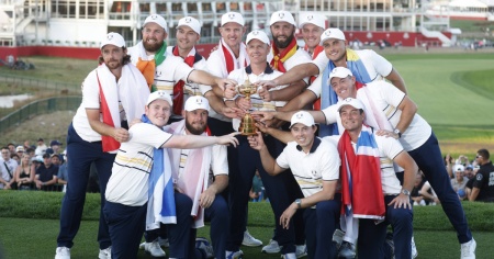 L’Europa si è infatti aggiudicata la 45esima edizione del trofeo, salvandosi grazie a Shane Lowry quando la rotta - col ribaltone pronto a concretizzarsi - sembrava segnata. L’irlandese, che ha pareggiato contro Russell Henley, ha imbucato un birdie alla 18 conquistando il mezzo punto necessario per arrivare a quota 14 e blindare la vittoria. Altri due pareggi hanno poi portato lo score sul definitivo 15-13.