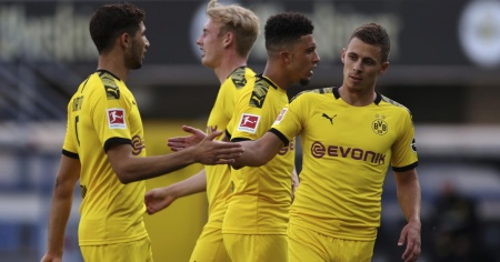 Per la formazione allenata dall'elvetico Lucien Favre gli eroi dell'incontro sono stati Sancho - autore di una sontuosa tripletta - Hazard, Hakimi e Schmelzer. Per i locali la rete della bandiera è invece stata realizzata da Hunemeier.