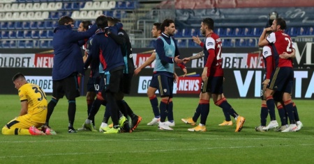 I sardi vincono 4-3 grazie a due reti nei recuperi. Sassuolo ok contro la Fiorentina (3-1)