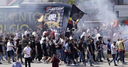 «Credo che il calcio possa fare a meno di fare filosofia e discutere di massimi sistemi, ma debba fermarsi a guardare le immagini, che hanno visto in tutta Italia. Tutti tranne Mazzoleni. Mi sono già arrivati messaggi da Napoli. Se vogliamo uccidere una squadra del Sud si manda Mazzoleni. A questo punto possiamo togliere il VAR, è diventata una scusante per le loro caz****. Noi stiamo perdendo un anno di sacrifici, mentre lui sta col c*** sulla panchina a guardare la tv e cambiare le decisioni. È una vergogna!».