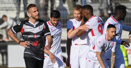 Arrivati in Ticino con le idee chiare, i biancorossi di Tramezzani hanno invece offerto una prova ordinata e, pur senza strafare, hanno colpito con cinismo. Limitate le fonti di gioco bianconere, i vallesani hanno piazzato il letale uno-due sul finire di primo tempo. Avanti al 42' con un piattone preciso di Baltazar (42'), gli ospiti hanno raddoppiato al 45', quando uno svarione di Daprelà ha permesso a Cavaré di entrare in possesso della sfera e firmare il 2-0.