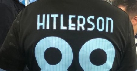 ROMA - Domenica scorsa si è giocato allo stadio Olimpico il derby di calcio tra Roma e Lazio, terminata con il successo dei biancocelesti per uno a zero sui giallorossi di mister Mourinho. Fin qui niente d'insolito. A creare un caso politico sono stati però i cori antisemiti della curva Nord, conditi da saluto romano dei sostenitori laziali. Con un ingrediente ancor più stonato però: un tifoso indossa la maglietta della sua squadra del cuore - la Lazio - con la scritta "Hitlerson" e il numero 88, inequivocabile riferimento al saluto nazista.