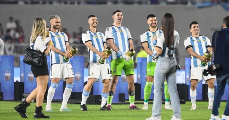 Se in quell'occasione il gestaccio era avvenuto sotto gli occhi increduli di Infantino con “l’ausilio” del premio destinato al miglior portiere della kermesse, questa volta "El Dibu" ci è ricascato con la copia della Coppa del mondo, consegnata a ogni giocatore dell'Argentina a margine del match contro Panama (2-0).