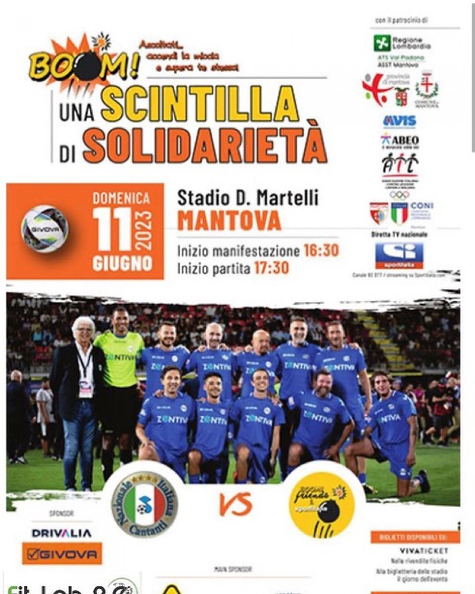 MANTOVA - Giornata di sport, stelle e beneficenza allo Stadio Martelli di Mantova, che oggi sarà teatro della partita tra “Boom Friends & Sport Italia” e la Nazionale Italiana Cantanti.