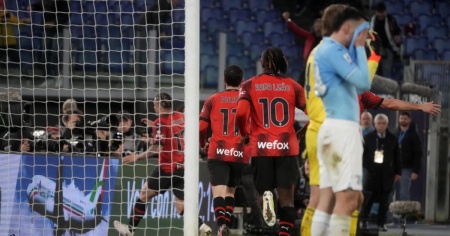 I rossoneri si sono infatti imposti con il punteggio di 1-0, in virtù del guizzo dell'elvetico Okafor - entrato in campo nella ripresa - all'88'. Da segnalare tre espulsioni rimediate dai biancocelesti - con Pellegrini (57'), Marusic (94') e Guendouzi (96') - i quali hanno così terminato la gara in otto uomini.
