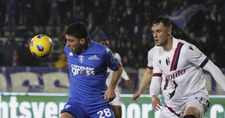 EMPOLI - Dopo la sconfitta interna rimediata contro l'Inter, il Bologna dei nazionali elvetici Freuler ed Aebischer (titolare il primo, subentrato il secondo) è tornato al successo al Castellani di Empoli dove si è imposto per 1-0. Decisivo Fabbian al 94'.