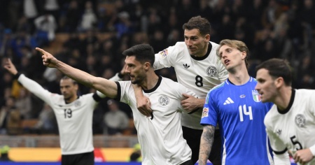 MILANO - Una bella Italia si è illusa ma è rimasta delusa contro la Germania, vittoriosa 1-2 a Milano nell’andata dei quarti di finale di Nations League. Pimpanti ma troppo imprecisi in attacco (Baumann ha difeso alla grande la porta tedesca), gli azzurri hanno trovato il vantaggio con Tonali al 9’ salvo poi vedersi riprendere e superare dai rivali. Alla fine hanno deciso le reti, entrambe di testa, di Kleindienst (49’) e Goretzka (76’). Il ritorno, che deciderà chi passerà il turno, si disputerà domenica al Signal Iduna Park di Dortmund.