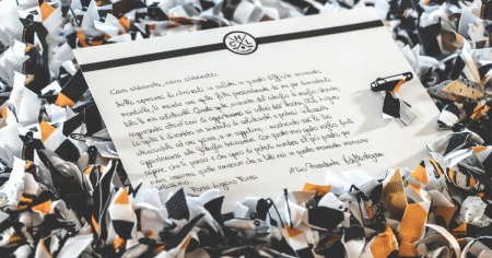 L’invio contiene inoltre una vera chicca: la spilla confezionata personalmente dal Presidente Vicky Mantegazza. La spilla è stata realizzata con il ritaglio di maglie storiche del Club e rappresenta un simbolo di solidarietà.