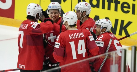 La Nazionale rossocrociata, che domani se la vedrà con la Slovacchia, resta a punteggio pieno in vetta al Gruppo A. A segno Malgin, Simion ed Herzog. Svezia in scioltezza contro la Gran Bretagna (6-0).
