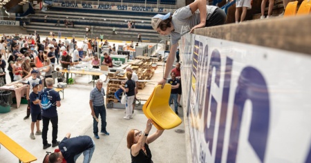Dalla mattina il “popolo biancoblù” ha nuovamente riempito quella che una volta era la sua casa per un commiato che si è velocemente trasformato in una festa con… souvenir annesso. Tra musica, cibo, bevande, abbracci e ricordi, tanti supporter hanno infatti approfittato dell'occasione per assicurarsi un pezzo di quella che è stata anche la loro storia. Si è cominciato con gli abbonati alla tribuna della stagione 2020/21, che hanno ritirato i seggiolini sui quali hanno seguito le gesta dei “loro” ragazzi, e si è continuato con quelli che, pur senza "prelazione", tali seggiolini li hanno invece acquistati. In mezzo c’è stato l’intervento di Filippo Lombardi e di tanti ex protagonisti delle stagioni, sia quelle soffertissime che quelle ricchissime, di una squadra che ancora riesce a far gonfiare il cuore a molti. Solo lo fa recitando su un altro (vicinissimo) palcoscenico.