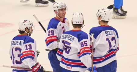 La selezione a stelle e strisce ha strapazzato il malcapitato Kazakistan con il netto punteggio di 10-1. Per la cronaca le reti sono state realizzate da Tkachuk - autore di una tripletta (8', 19' e 46') - Boldy - che ha messo a segno una doppietta (5' e 24') - così come da Nelson (17'), Brindley (22'), Kunin (32'), Hayes (46') e Gaudreau (51'), i quali hanno siglato una segnatura a testa. Per gli avversari di serata il gol della bandiera è invece giunto nella fase finale del confronto per merito di Omirbekov (47').